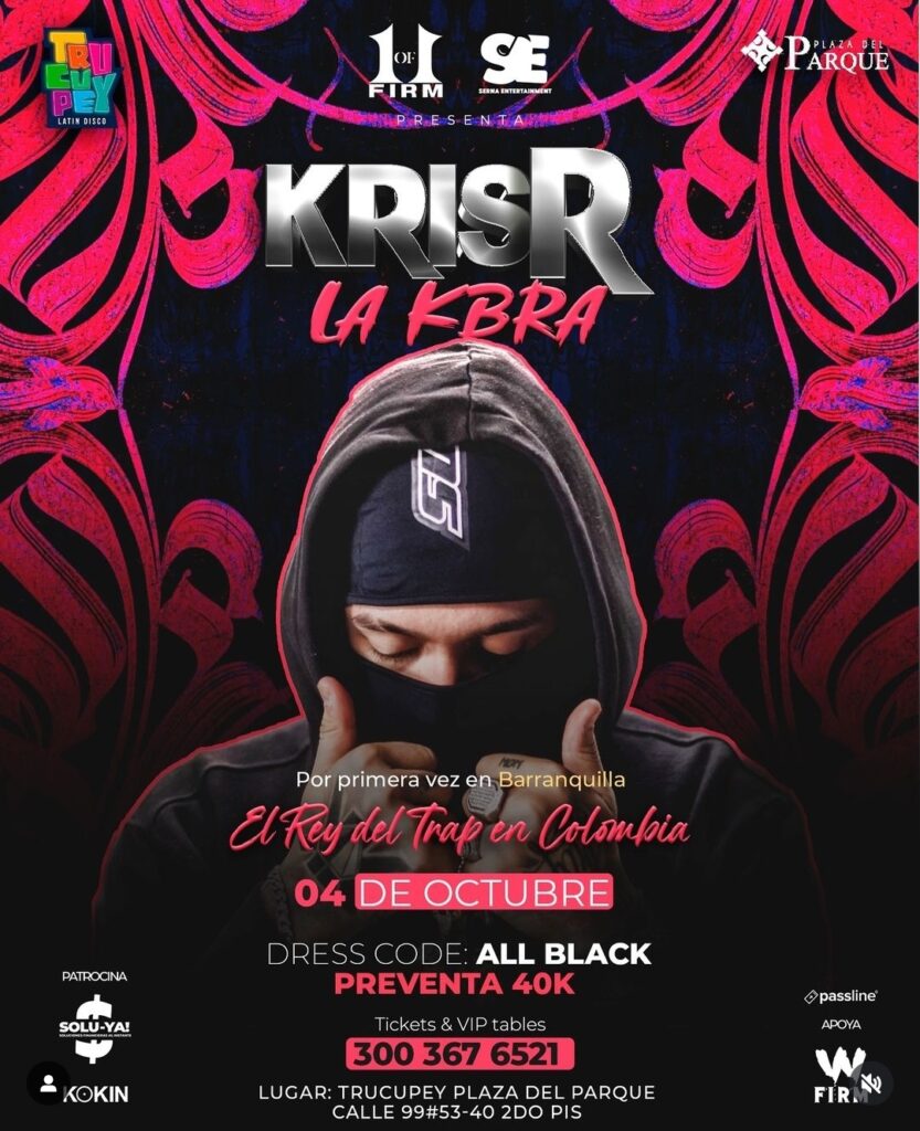 Este evento, que se vendió en su totalidad, promete dar mucho de qué hablar. Todo esto es posible gracias a la firma 101 de Mateo Rodríguez Viñas, reconocido en la ciudad por traer artistas de renombre, y a Juan Felipe Serna, dueño de Serna Entertainment, quien gestionó el gran show de esta noche.Para Kris R, será su primera presentación en Barranquilla, donde busca dejar una huella en su carrera y promover sus más recientes éxitos.